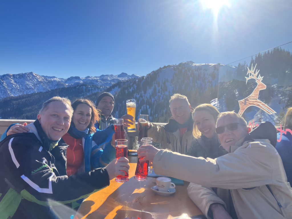 Unsere behagliche Almhütte bietet neben der perfekten Lage inmitten einer malerischen Alpenkulisse alles, was man sich für einen gelungenen Skiurlaub wünscht: bodenständige, regionale Küche, eine Sauna, genügend Platz für gemeinsame Stunden am Abend, gemütliche Betten und natürlich ein ordentliches Après-Ski-Programm.